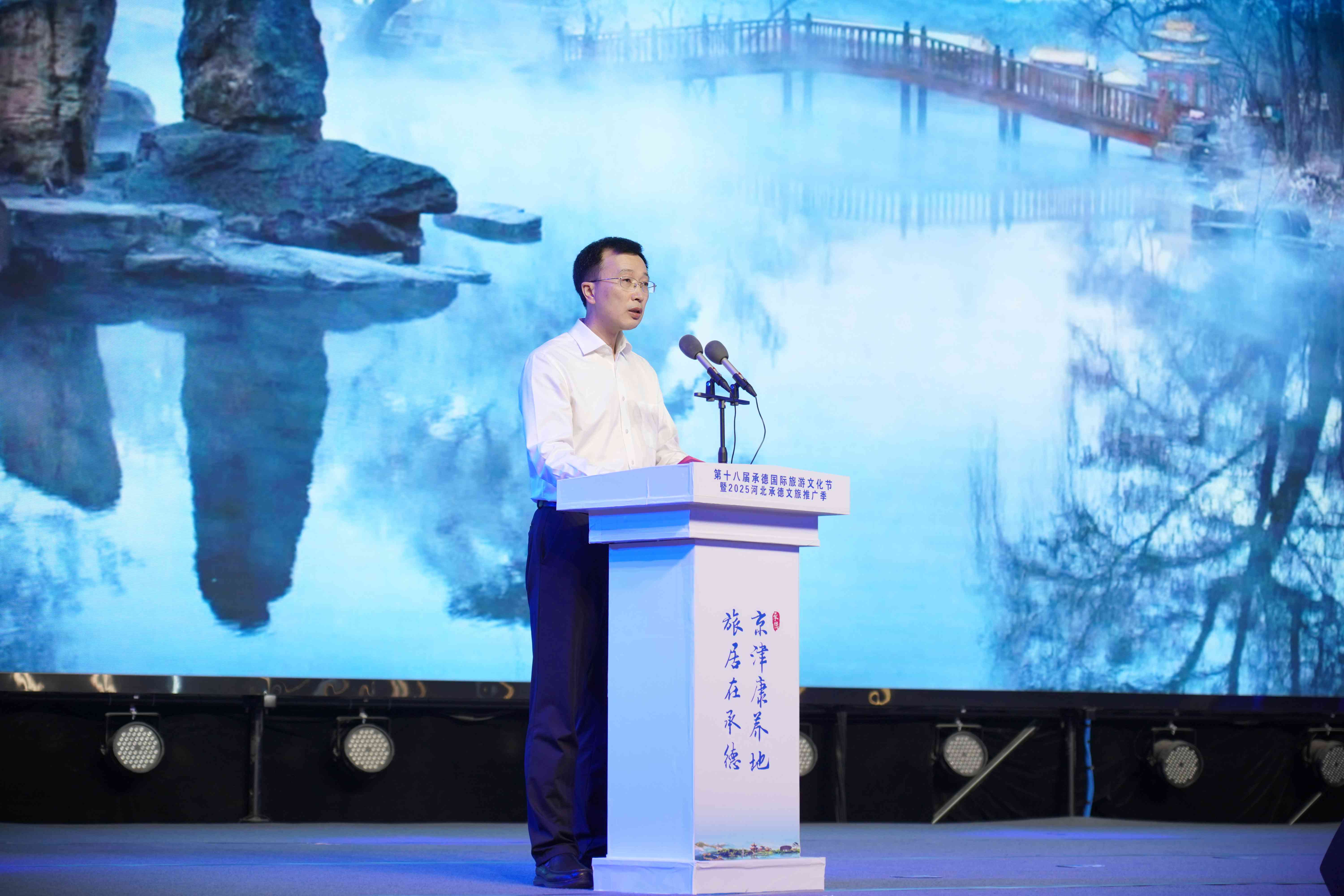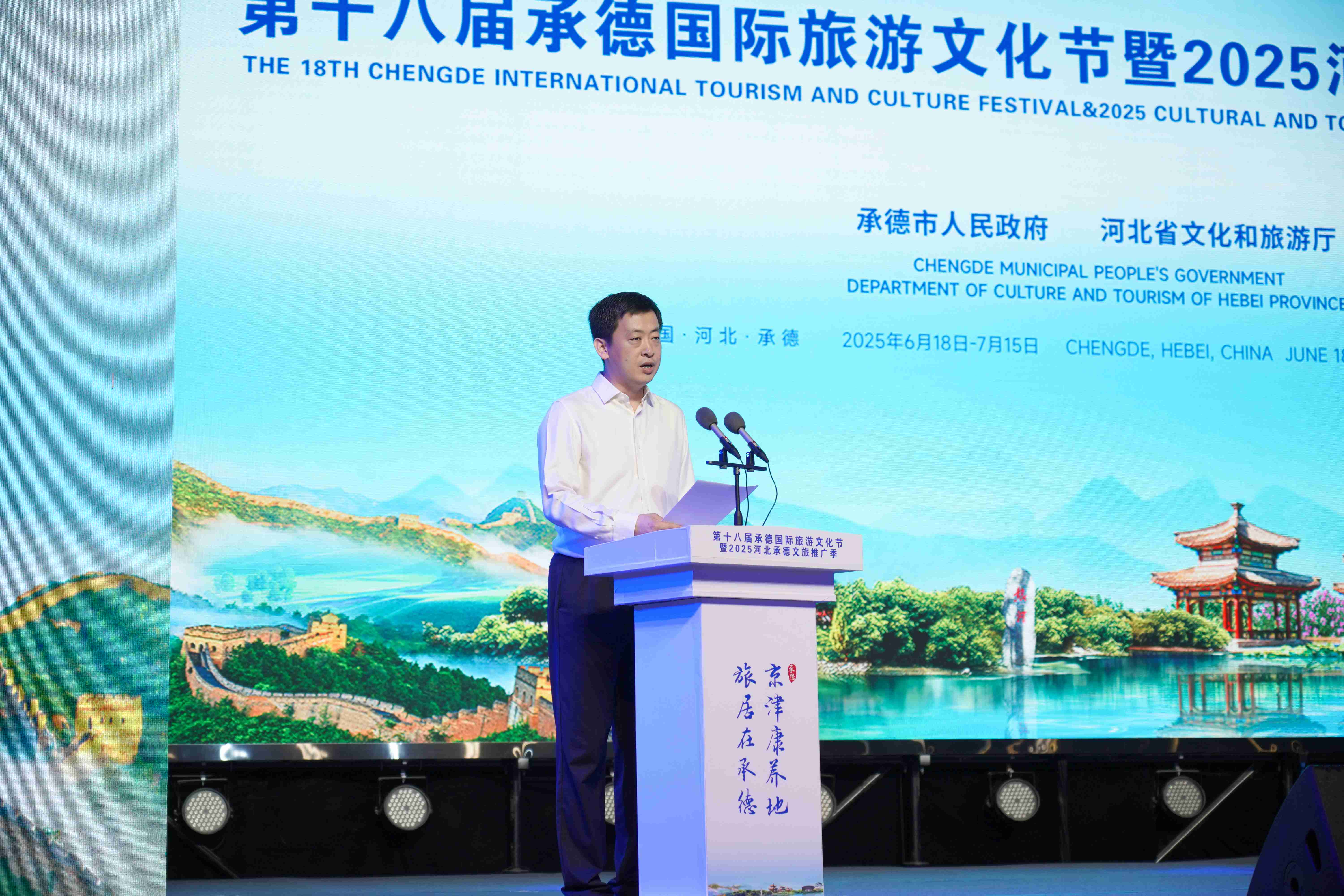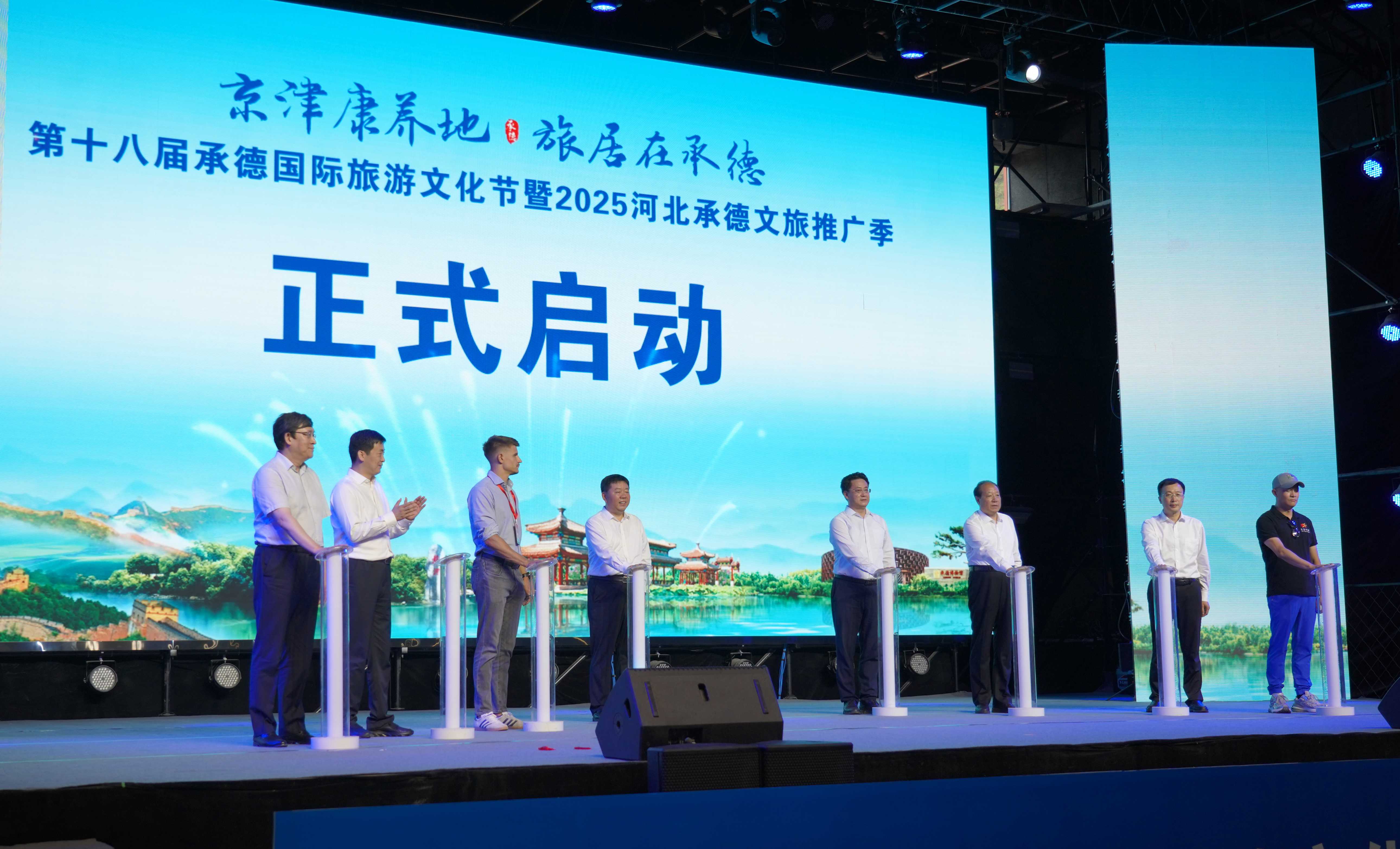 在熱烈的氛圍中,與會領(lǐng)導(dǎo)共同按下啟動裝置,標(biāo)志著第十八屆承德國際旅游文化節(jié)暨2025河北承德文旅推廣季正式啟幕。